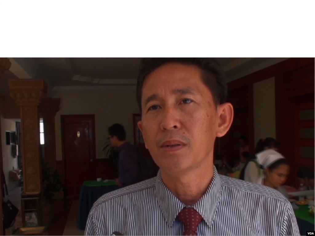 លោក ឈិត សំអាត នាយកប្រតិបត្តិអង្គការ NGO Forum សម្ភាសជាមួយអ្នកយកព័ត៌មានវីអូអេ អំឡុងពេលធ្វើសិក្ខាសាលានៅភ្នំពេញ។