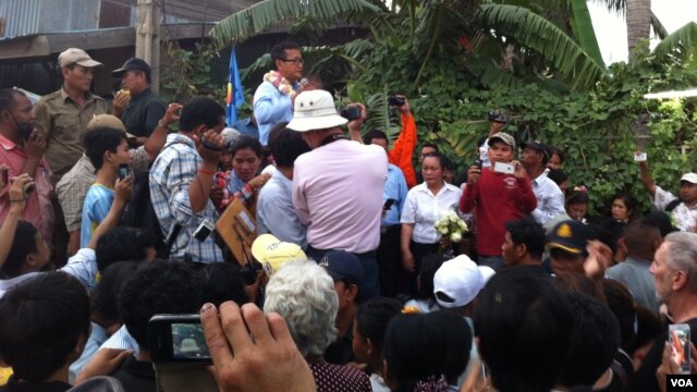 លោក សម រង្ស៊ី ប្រធានគណបក្សសង្គ្រោះជាតិជួបជាមួយអ្នកភូមិបឹងកក់។
