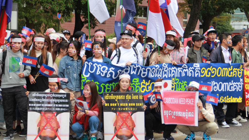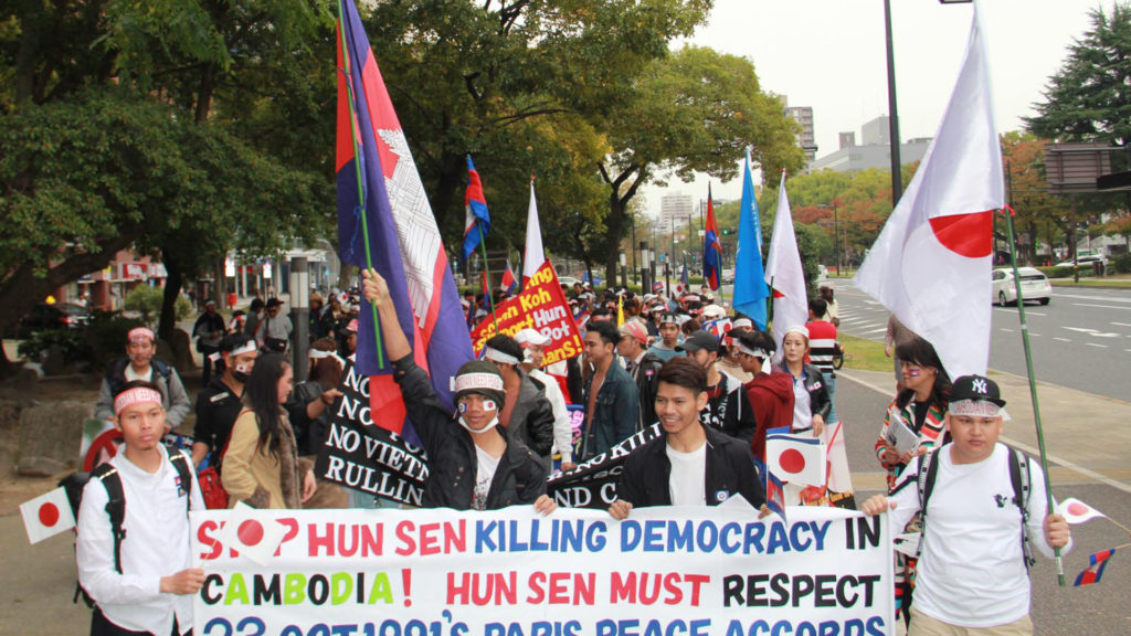 សមាជិក​ចលនា​សង្គ្រោះ​ជាតិ​នៅ​ជប៉ុន នាំ​គ្នា​ធ្វើ​បាតុកម្ម​គាំទ្រ​ដំណើរ​មាតុភូមិ​និវត្តន៍​របស់​លោក សម រង្ស៊ី ថ្ងៃ​ទី៩ វិច្ឆិកា។