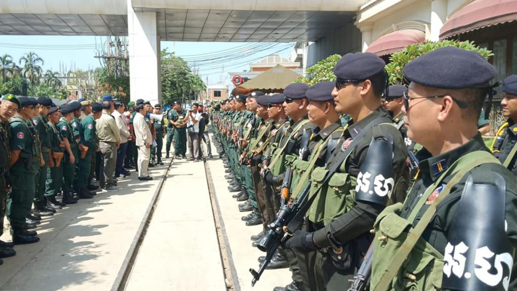 ទិដ្ឋភាពនៃការដាក់ពង្រាយកងកម្លាំងប្រដាប់អាវុធ នៅច្រកទ្ធារព្រំដែនប៉ោយប៉ែត នៅព្រឹកថ្ងៃទី៥ ខែវិច្ឆិកា ឆ្នាំ២០១៩ ត្រៀមទប់ទល់ការធ្វើមាតុភូមិនិវត្តន៍របស់លោក សម រង្ស៊ី និងអ្នកដឹកនាំគណបក្សសង្គ្រោះជាតិផ្សេងៗ ទៀត នៅថ្ងៃទី៩ វិច្ឆិកា។