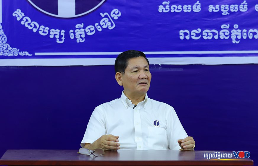 លោក ថាច់ សេដ្ឋា អ្នកនាំពាក្យគណបក្សភ្លើងទៀន។ (ហេង វិចិត្រ)